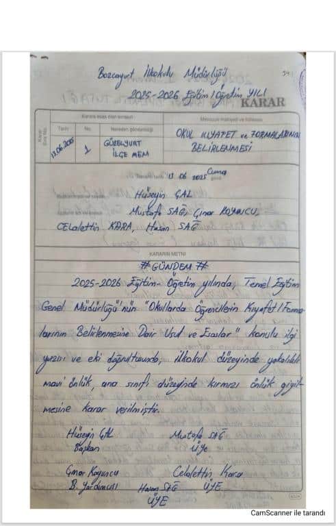 Bakanlığımızın yönergesine uygun şekilde velilerimizle karar...